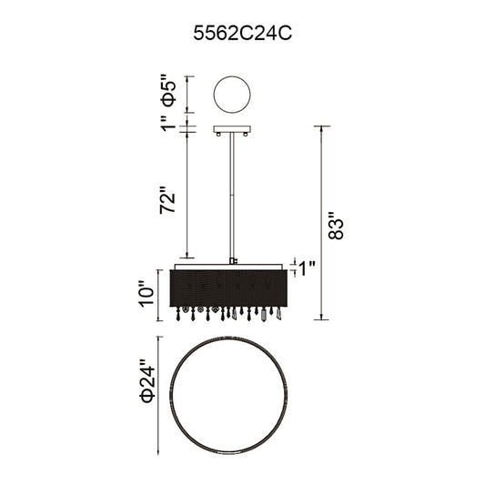 CWI Water Drop 4 Light Drum Shade Flush Mount, Chrome/Black