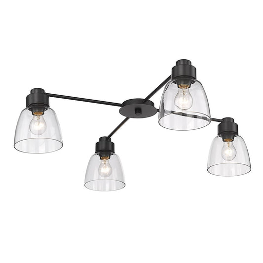 Golden Lighting Remy 4 Light Flush Mount, Matte Black/Clear