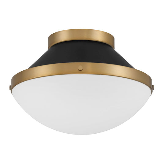 Crystorama Gidget 1 Light Flush Mount, Black/Gold/Etched Opal