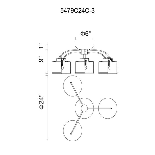 CWI Frosted 3 Light Drum Shade Flush Mount, Chrome/Off White