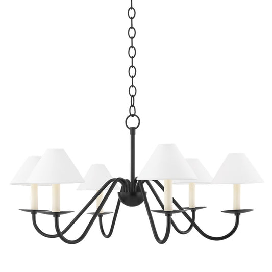Mitzi Polly 6 Light Chandelier, Aged Brass/Bronze/White Linen