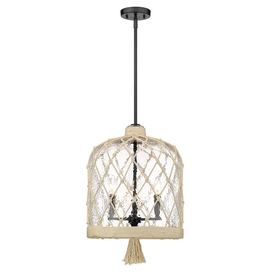 Golden Lighting Aenon 3 Light Flush Mount, Black/Hammered Water