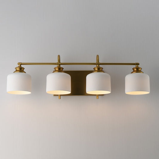 Maxim Lighting Bisque 4 Light Bath Vanity, Natural Aged Brass/White