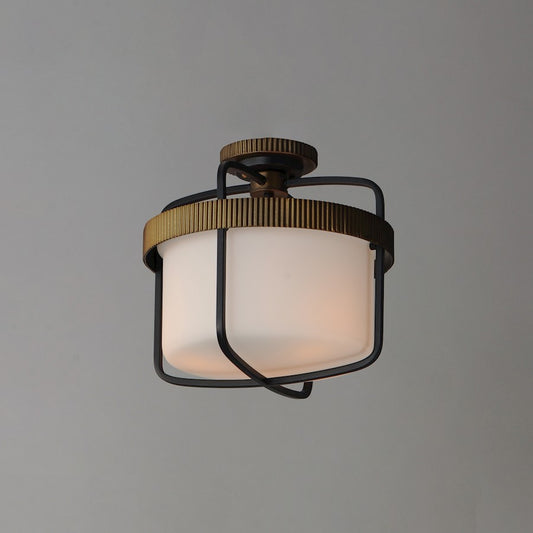 Maxim Ruffles 3 Light Semi-Flush Mount, Black/Antique Brass/White