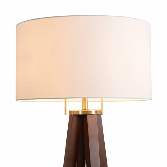 Nova California Quattro 1 Light Table Lamp, Walnut Wood/Brass/White