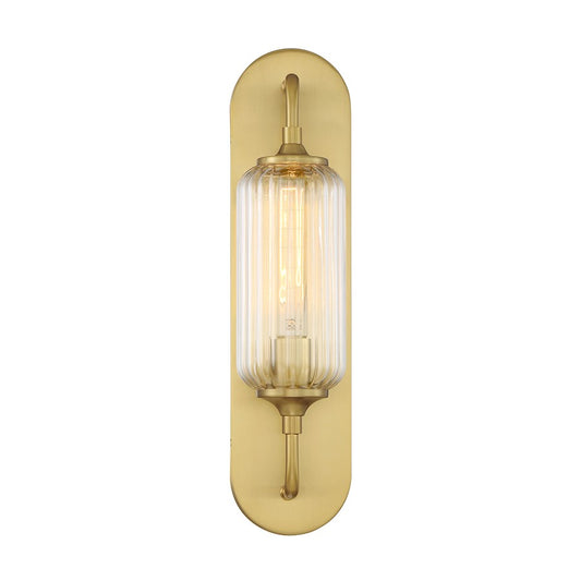 Savoy House Holton 1 Light Sconce, Warm Brass/Clear Ribbed