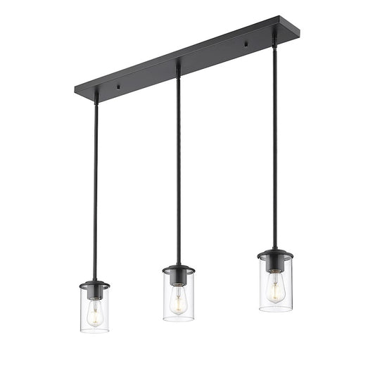 3 Light Pendant, Matte Black/Clear