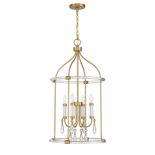 4 Light Pendant, Warm Brass/Clear