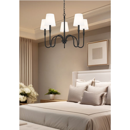 Z-Lite Jisele 5 Light Chandelier, Matte Black/White