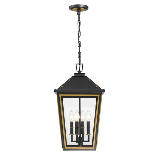 Crystorama Simpson 3 Light Outdoor Pendant, Black/Textured Gold