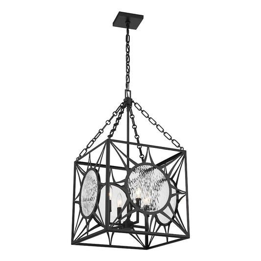 Savoy House Balfour 4 Light Pendant, Matte Black/Clear Water