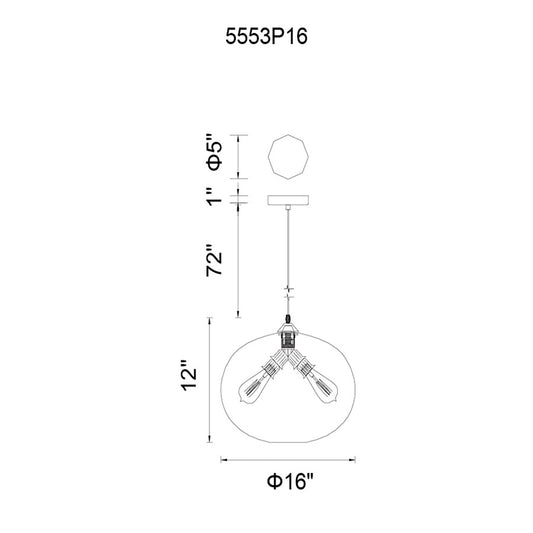3 Light 15" Pendant, Black