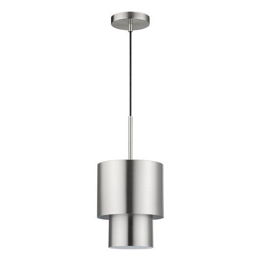 Livex Zolana 1Lt Pendant, Nickel/Nickel Steel/Shiny White