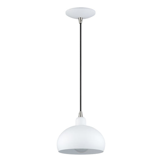 Livex Domma 1Lt Mini Pendant, White/Nickel Accents/White Steel/White
