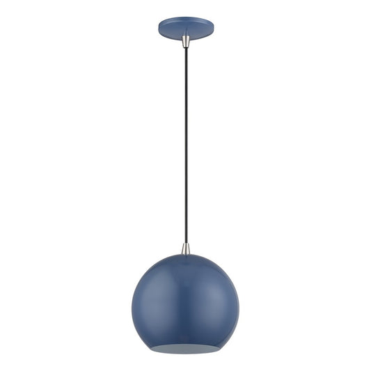 Livex Kuppola Globe Pendant, Blue/Nickel/Blue Aluminum/White