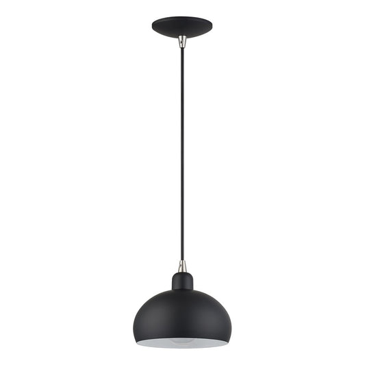 Livex Domma 1Lt Mini Pendant, Black/Nickel Accents/Black/Shiny White