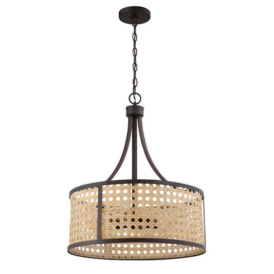Pendant with Rattan Shade, Flat Black
