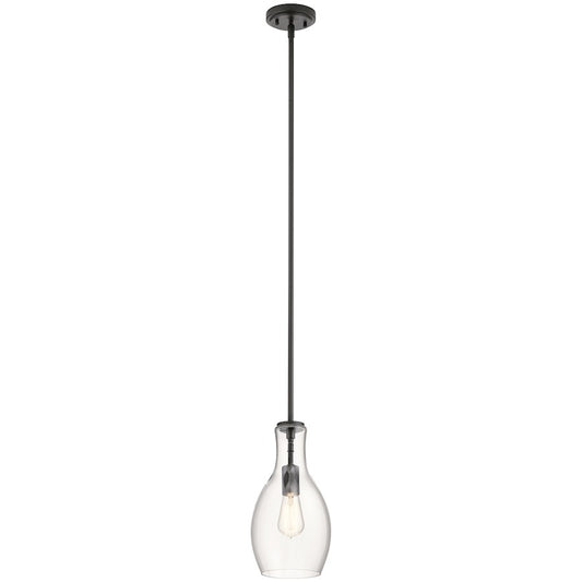 1 Light Hour Glass Pendant, Clear Glass Black
