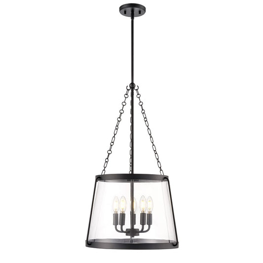 Millennium Lighting Adabella 17.75" 5Lt Pendant, Matte Black/Clear