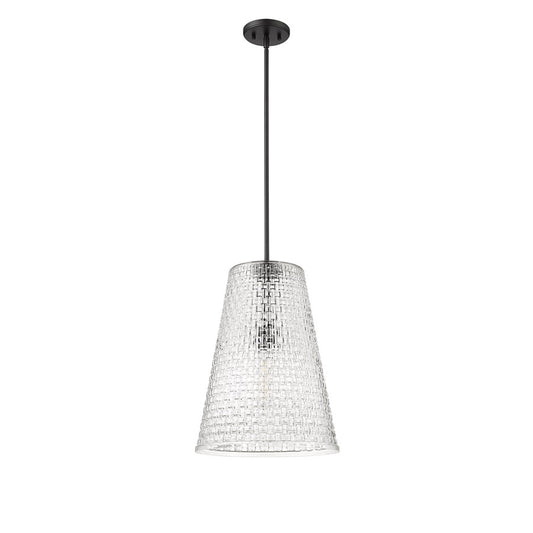 Millennium Lighting Khrisa 1Lt 15" Pendant, Black/Clear Hammered
