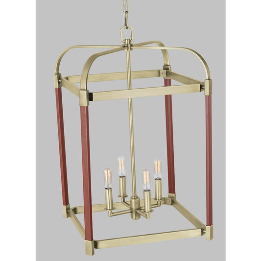 4 Light Medium Lantern, Time Worn Brass