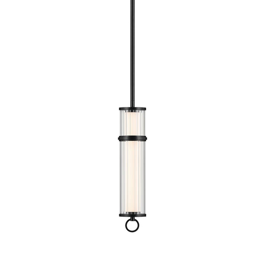 Kichler Riven 15.5" LED 1 Light Mini Pendant, Black/Clear Fluted