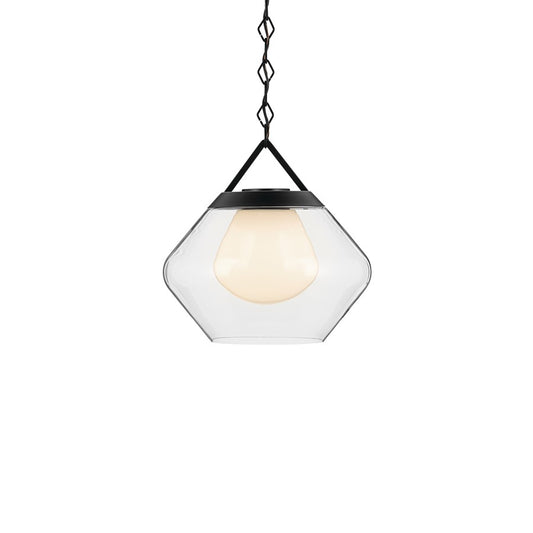 Kichler Nella 12" 1 Light Pendant, Black/Clear Outer/Opal Interior