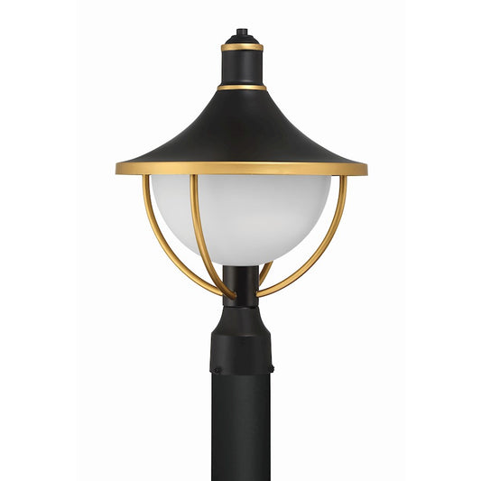Crystorama Atlas 1 Light Outdoor Post, Black/Gold/White