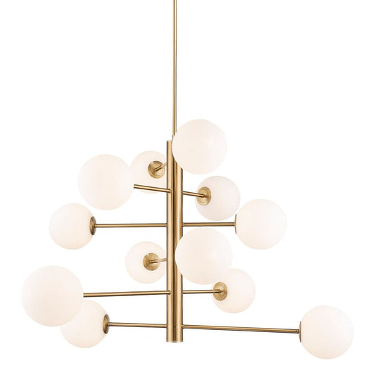 12" Diameter 4 Light Chandelier, Brushed Brass