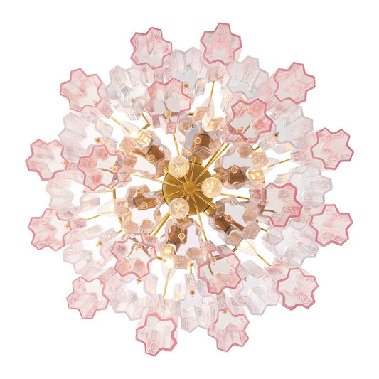 Crystorama Esme 9Lt Pendant, Brass/Floral Glass Petals Smoked