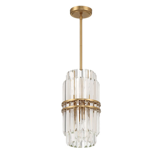 Crystorama Gregory 1 Light Mini Pendant, Aged Brass/Clear
