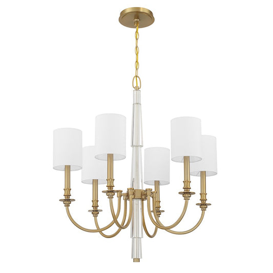 Crystorama Lloyd 6 Light Chandelier, Aged Brass/White
