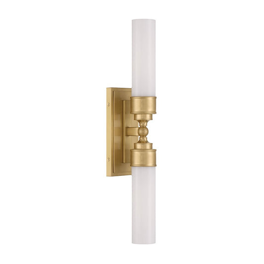 Crystorama Wilcox 2 Light Sconce, Aged Brass/White