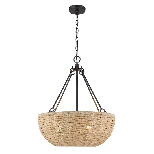 4 Light Pendant, Black/Natural Rope