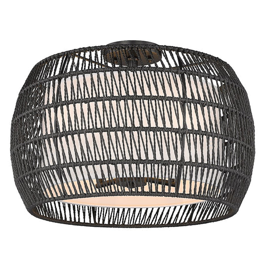 Golden Lighting Everly Semi-Flush, Black/Natural Rattan