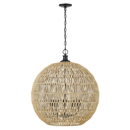 Golden Lighting Erma 5-Light Flush Mount, Black/Black Wicker