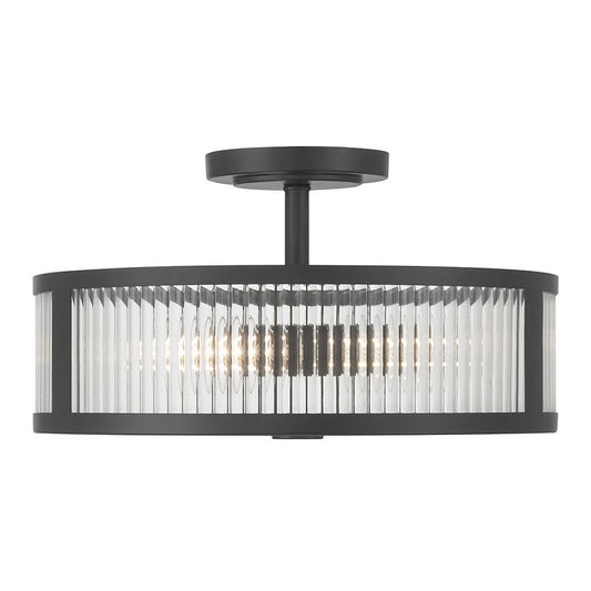 Millennium Ardezia 3Lt Semi Flush Mount, Black/Clear Ribbed