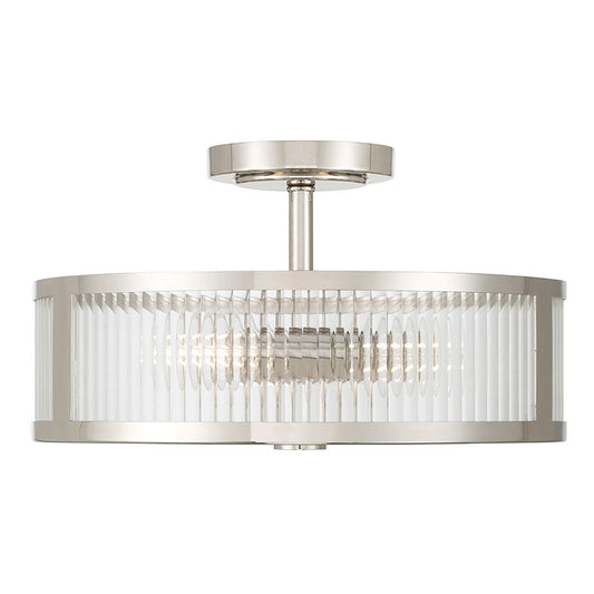 Millennium Ardezia 3Lt Semi Flush Mount, Nickel/Clear Ribbed