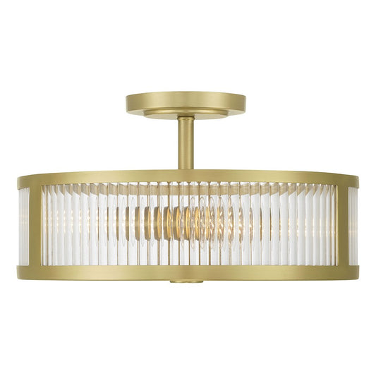Millennium Ardezia 3Lt Semi Flush Mount, Brass/Clear Ribbed