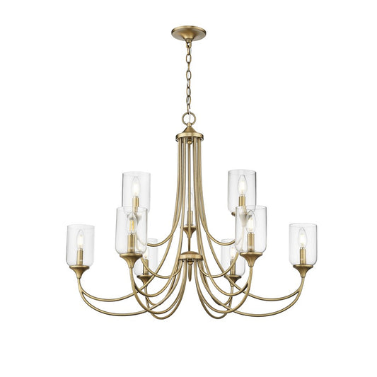 Millennium Lighting Strayhan 28.5" 9Lt Chandelier, Modern Gold/Clear