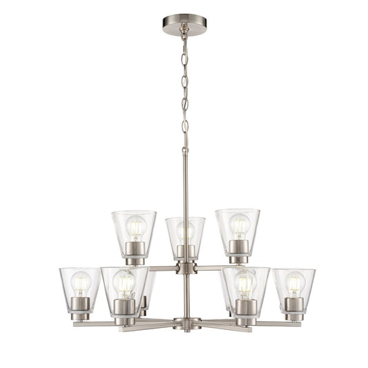 9 Light 26.75" Chandelier, Satin Nickel