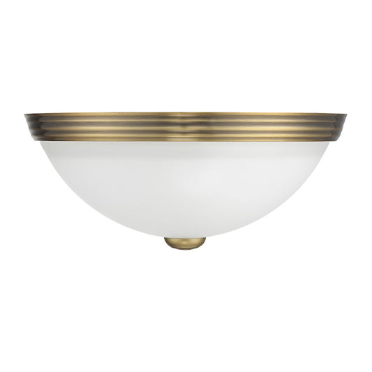 Meridian Modern 2 Light Flush Mount, Natural Brass/White