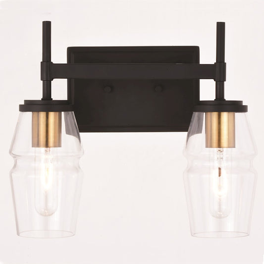 2 Light 16" Bathroom Vanity Light, Matte Black