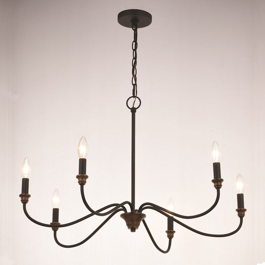 6 Light Chandelier, Matte Black