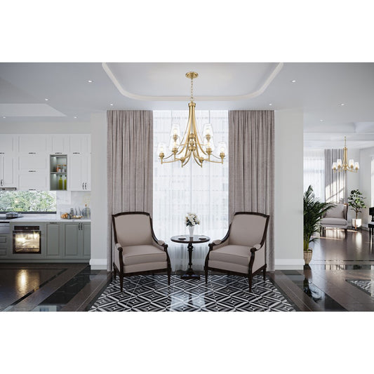 9 Light Chandelier, Modern Gold