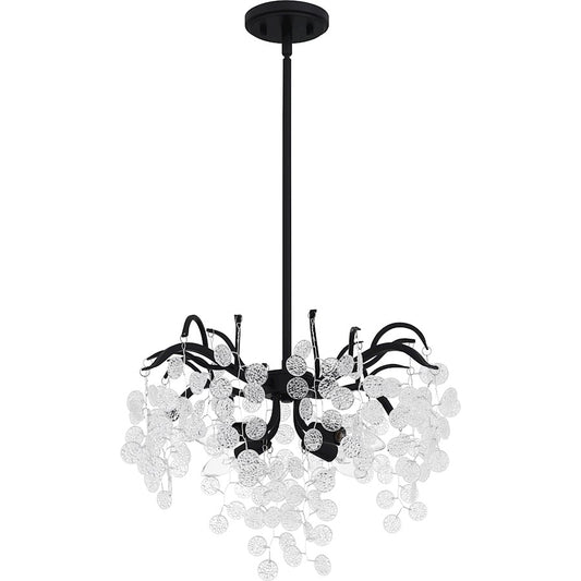 Quoizel Atkins 4 Light Chandelier, Matte Black/Opal Etched