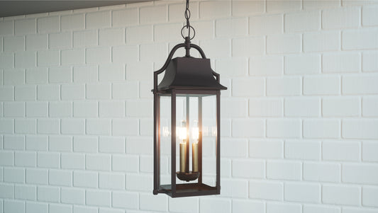 Quoizel Manning 3 Light Outdoor Hanging Lantern, Western Bronze