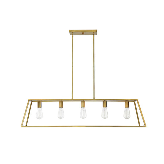 5 Light Linear Chandelier, Warm Brass