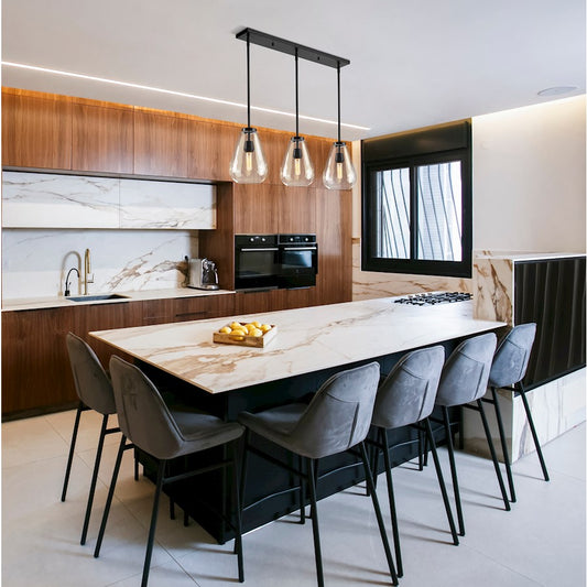 3 Light Linear Chandelier, Matte Black