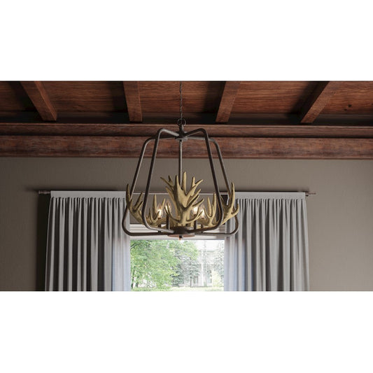 5 Light Chandelier, Antique Gold